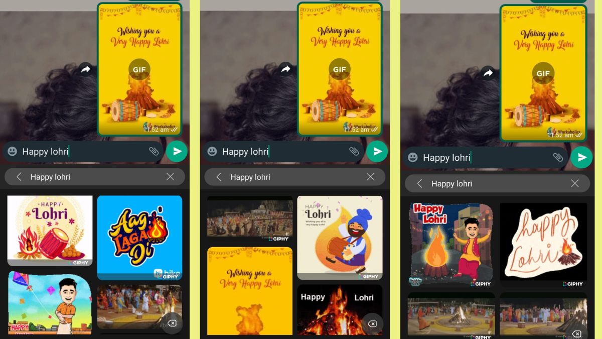 वाट्सऐप और इंस्ट्राग्राम पर भेजे GIF- अगर आप अपने दोस्तों या परिवार वालों को मैसेज के जरिए लोहड़ी की बधाई देना चाहते हैं, तो बोरिंग हैप्पी लोहड़ी लिखने के बजाए मजेदार GIF भेज सकते हैं। इसके लिए बस कुछ स्टेप फॉलो करने होंगे।