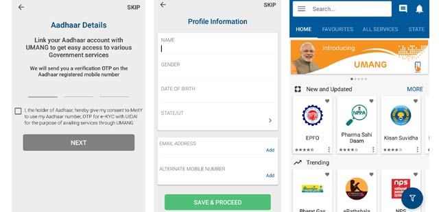 5- इसके बाद आपसे आधार डिटेल मांगी जाएगी। इसे एंटर कर दें। इसे आप स्किप भी कर सकते हैं। इसके बाद आपसे कुछ निजी जानकारी मांगी जाएंगी। इन्हें एंटर कर Save and Proceed पर टैप कर दें। इसे भी आप स्किप कर सकते हैं। इसके बाद एप की होम स्क्रीन ओपन हो जाएगी। यहां से आप किसी भी सरकारी सेवा का लाभ उठा सकते हैं।
