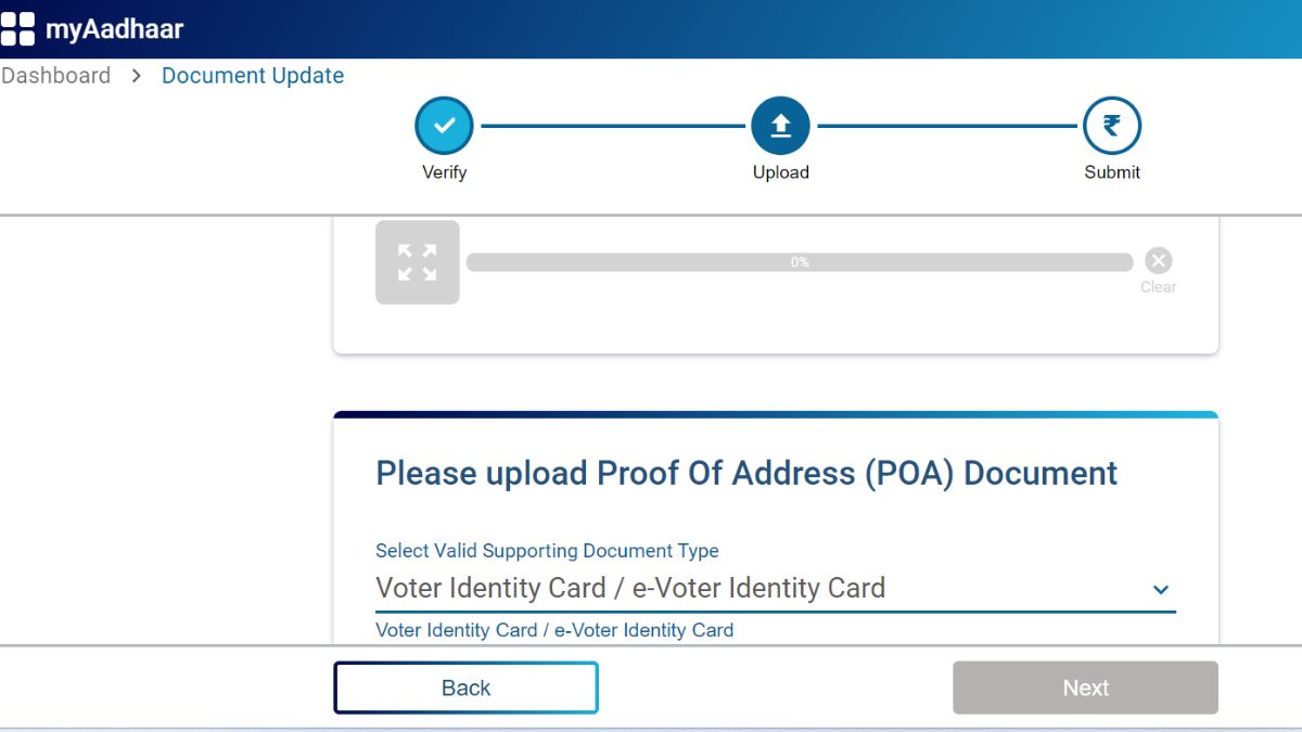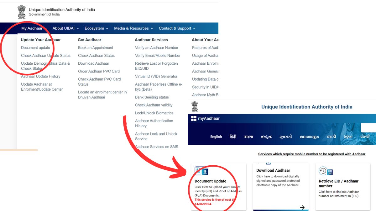 -होम पेज मेन्यू में माय आधार का सेक्शन मिलेगा, जिसमें डॉक्यूमेंट अपडेट वाले ऑप्शन पर टैप करना है।