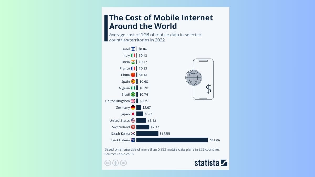 हालांकि, दुनिया में सबसे सस्ती इंटरनेट सर्विस मिलने वाले देश के रूप में इजराइल का नाम आता है। यहां 1GB मोबाइल डेटा की कीमत 3.32 रुपये पड़ती है।