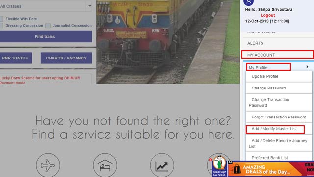 IRCTC मास्टर लिस्ट फीचर कैसे करें इस्तेमाल:
