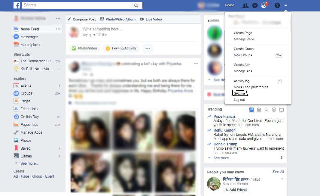 दाहिनी तरफ(राइट साइड) ऊपर की ओर आपको Settings का ऑप्शन दिखाई देगा। इस पर क्लिक करें।