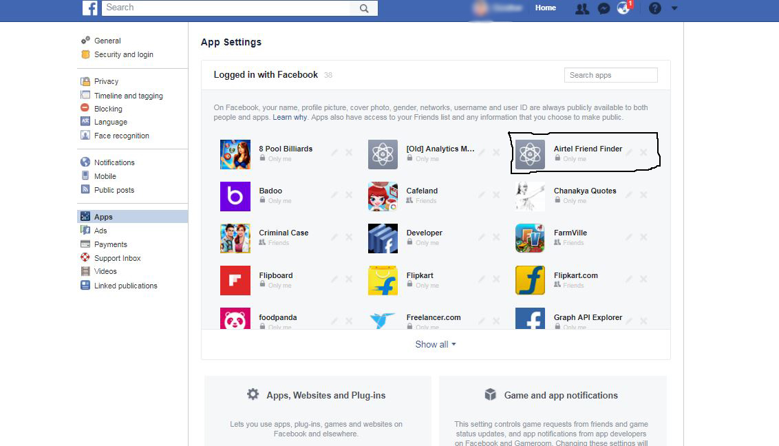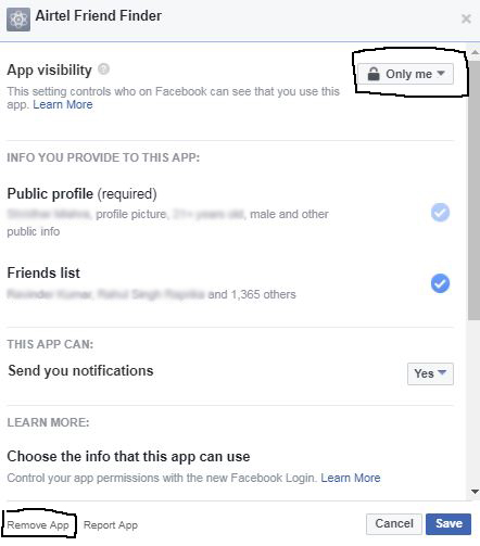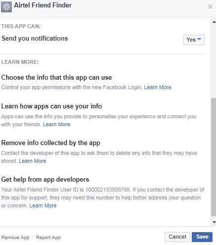 Apps Settings पेज पर आपको कई सारे एप्स दिखाई देंगे। ये सभी एप्स आपकी कोई ना कोई जानकारी एक्सेस करते हैं। आपको देखना होगा कि कौन सा एप आपके काम का नहीं है। हमने उदाहरण के लिए Airtel Friend Finder एप को चुना। एप के सामने दिख रहे पेंसिल आइकन पर क्लिक करें।