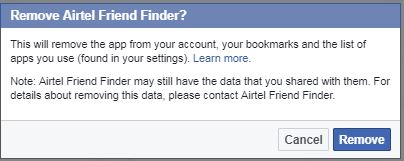 फेसबुक आपसे फिर पूछेगा। आप Remove बटन पर क्लिक करके एप को डिलीट कर सकते हैं।