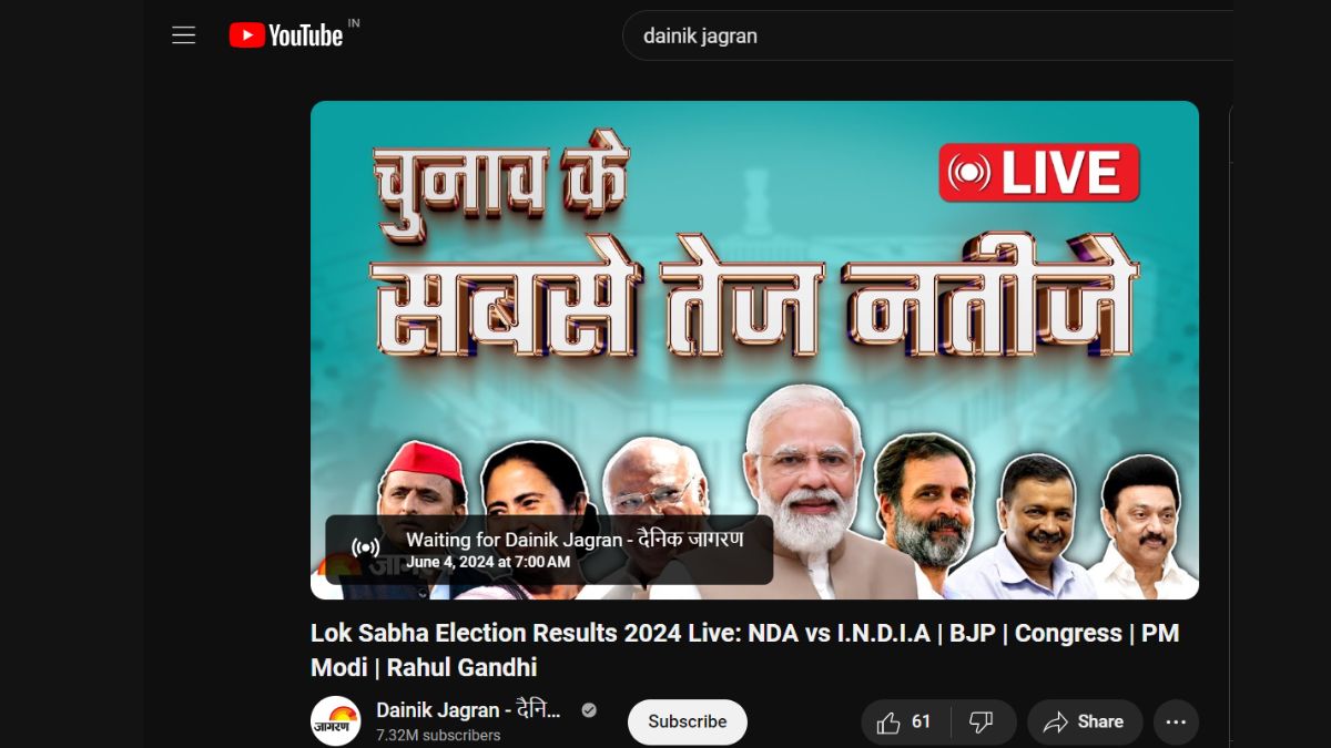 चुनाव की लाइव कवरेज दैनिक जागरण के ऑफिशियल यूट्यूब चैनल के साथ भी देख सकते हैं। इसके अलावा, जागरण की ऑफिशियल वेबसाइट पर भी विजिट किया जा सकता है।
