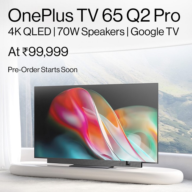 कंपनी ने OnePlus TV 65 Q2 Pro एक नया टीवी पेश किया है। नया टीवी 65 इंच 4K पैनल के साथ 120Hz रिफ्रेश रेट के साथ उतारा गया है। इसकी कीमत 99,999 रुपये रखी गई है।