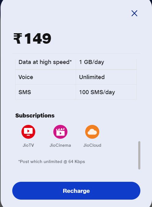 जियो का 149 रुपये वाला प्रीपेड रिचार्ज प्लान