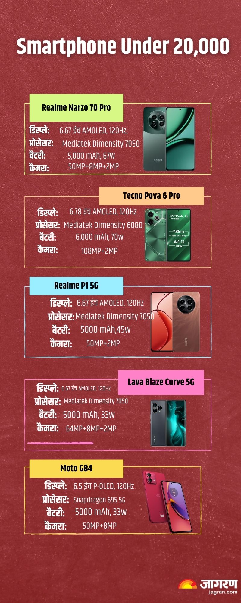 Smartphone Under 20000: 20 हजार रुपये के बजट में आने वाले स्मार्टफोन, मिलती है बड़ी बैटरी और पावरफुल रैम