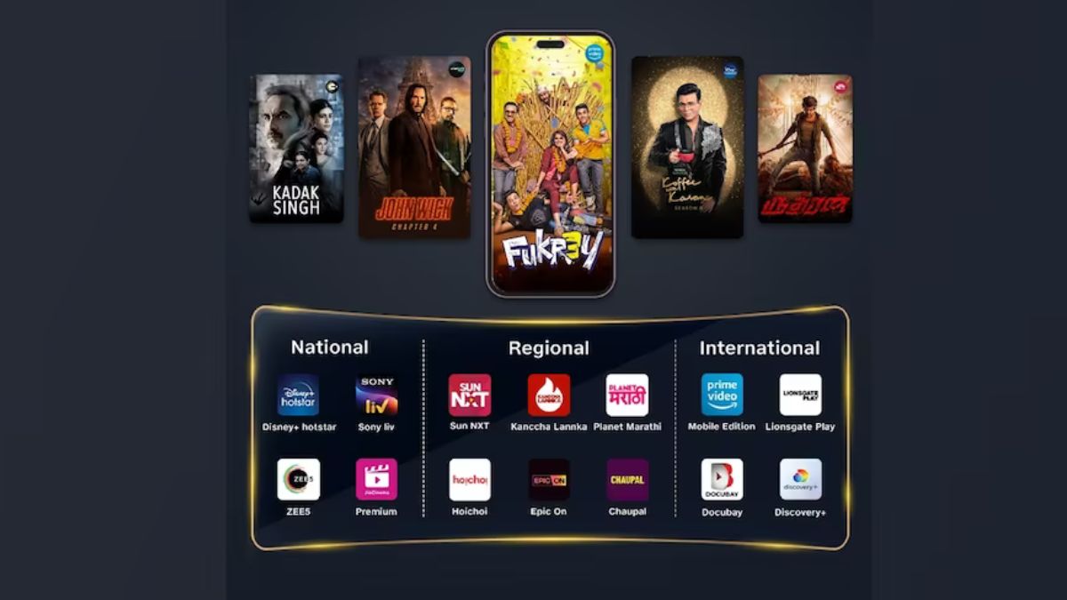 - इस प्लान के साथ कंपनी 14 OTT प्लेटफॉर्म का सब्सक्रिप्शन दे रही है। इसमें JioCinema प्रीमियम, डिज्नी + हॉटस्टार, सोनी लिव, Zee5, अमेजन प्राइम वीडियो (मोबाइल वर्जन), लायंसगेट प्ले, डिस्कवरी +, डॉक्यूबे, SunNXT, होइचोई, प्लैनेट मराठी, चौपाल, एपिकऑन और कांचा लन्नका शामिल है, जिसे JioTV प्रीमियम सब्सक्रिप्शन के जरिए पाया जा सकता है।