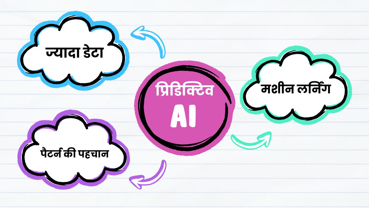 प्रेडेक्टिव एआई तीन फैक्टर के साथ काम करता है- इनमें ज्यादा मात्रा में डेटा, मशीन लर्निंग और पैटर्न की पहचान करना शामिल है-