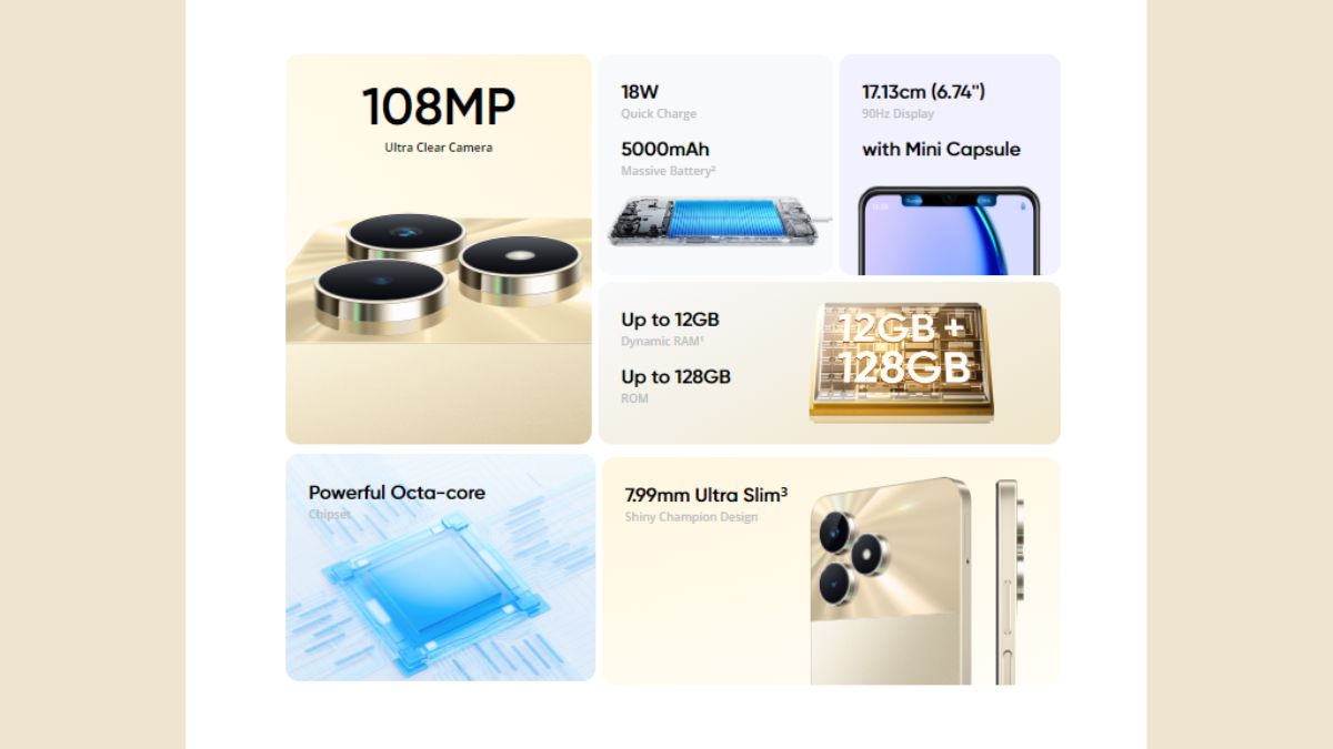 दरअसल, हम यहां realme C53 स्मार्टफोन की बात कर रहे हैं। रियलमी के इस फोन को रियलमी की वेबसाइट पर 10,999 रुपये ( 6GB Ram और 64GB स्टोरेज वेरिएंट) पर लिस्ट किया गया है।