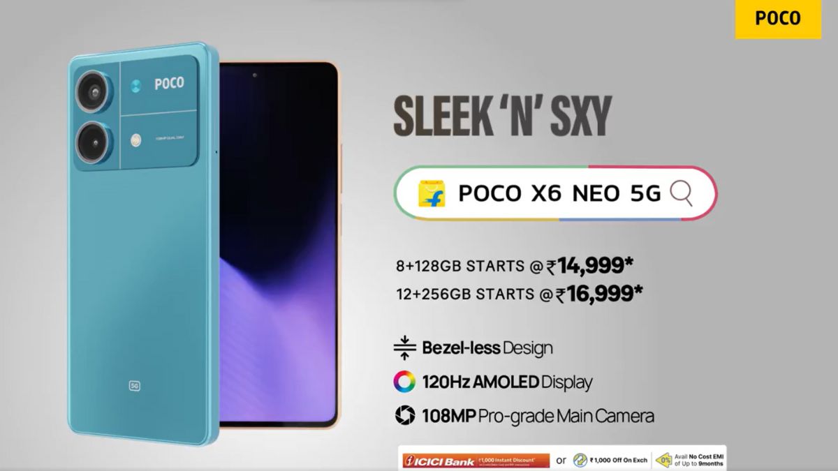 Poco X6 Neo 5G फोन की सेल आज दोपहर 12 बजे लाइव होने जा रही है। इस फोन की खरीदारी ऑनलाइन शॉपिंग वेबसाइट फ्लिपकार्ट से कर सकते हैं।