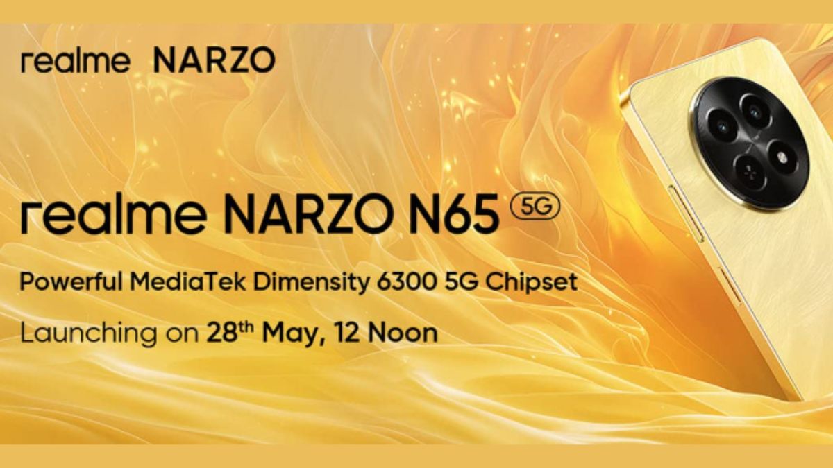 Realme Narzo N65 5G को इसी महीने लॉन्च किया जा रहा है। नया नारजो फोन 28 मई को लॉन्च हो रहा है। इस फोन की खूबियों से लॉन्च से पहले ही पर्दा हट चुका है।