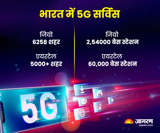 - रिलायंस जियो ने अब तक 2,54000 5G बेस स्टेशन सेटअप कर दिए हैं।
