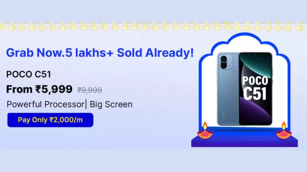 POCO C51 स्मार्टफोन को सेल में 5999 रुपये में लिस्ट किया गया है। इस फोन को बैंक और एक्सचेंज ऑफर में भी घर ले जा सकते हैं।