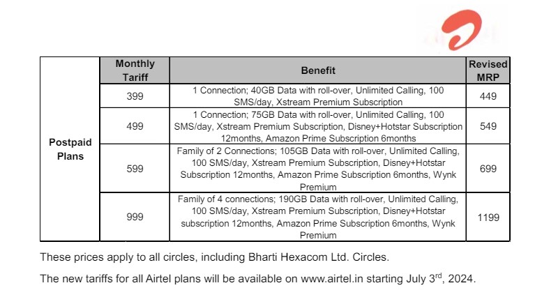 एजेंसी, नई दिल्ली। रिलायंस जियो द्वारा टैरिफ वृद्धि की घोषणा के बाद भारती एयरटेल ने भी अपने मोबाइल प्लान की कीमतों में 11% से लकर 21% की वृद्धि कर दी है, जो 3 जुलाई, 2024 से प्रभावी होगा। यह कदम स्थिर मूल्य निर्धारण की ढाई साल की अवधि के बाद उठाया गया है।