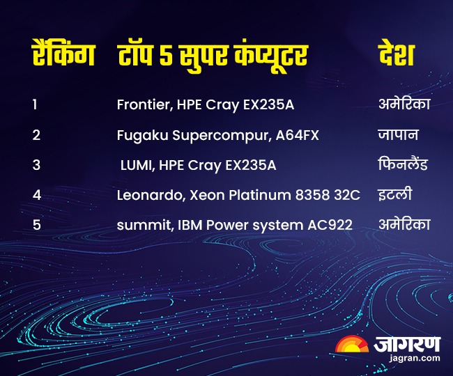 दूसरे नंबर पर जापान का Fugaku Supercompur, A64FX लिस्ट में शामिल रहा। फिनलैंड के LUMI, HPE Cray EX235A को टॉप 500 सुपर कंप्यूटर में तीसरी रैंकिग मिली। चौथे नंबर पर Leonardo, Xeon Platinum 8358 32C सुपरकंप्यूटर रहा। पांचवे पायदान पर एक बार फिर अमेरिका का summit, IBM Power system AC922 एआई सुपर कंप्यूटर रहा।