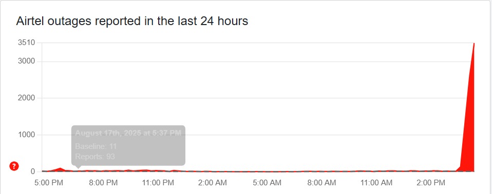 टेक्नोलॉजी डेस्क, नई दिल्ली। आज एयरटेल देश भर में हजारों यूजर्स के लिए ठप पड़ गया है। कई यूजर्स ने सोशल मीडिया प्लेटफॉर्म पर अपने एयरटेल नंबर से कॉल न कर पाने और डेटा सर्विस का इस्तेमाल न कर पाने की समस्या की सूचना दी है। आउटेज ट्रैकिंग प्लेटफॉर्म के अनुसार, दोपहर में समस्या की रिपोर्ट में तेजी आई है, जिससे कई ग्राहक डेटा एक्सेस या कॉल करने में असमर्थ रहे।