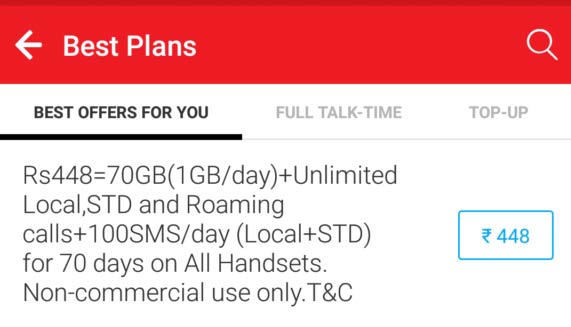 नोट: यह प्लान कुछ चुनिंदा प्रीपेड यूजर्स के लिए ही उपलब्ध है। ऐसे में यह प्लान एक्टिवेट कराने से पहले कस्टमर सर्विस पर कॉल कर यह पता करें कि क्या आपके नंबर पर यह प्लान लिया जा सकता है या नहीं।