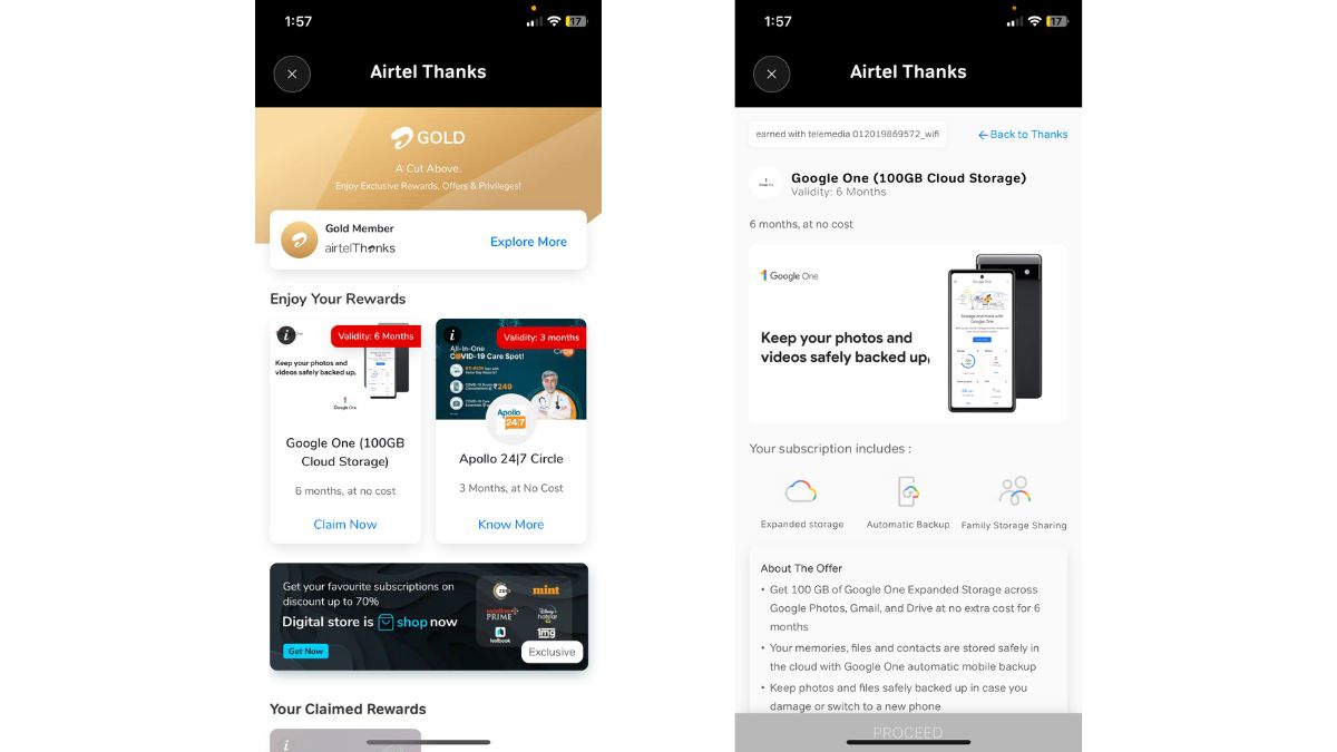कंपनी ने इस ऑफर को पेश करते हुए बताया है कि 100GB क्लाउड स्टोरेज ऑफर एक्टिवेशन की तारीख से 6 महीने के लिए वैलिड रहेगा। एलिजिबल यूजर्स एयरटेल थैंक्स ऐप के जरिए इसका फायदा उठा सकते हैं, जहां गूगल वन स्टोरेज प्लान को एक्टिवेट करने का ऑप्शन आपको मिल जाएगा। एक बार एक्टिवेट होने के बाद यूजर्स गूगल फोटो, गूगल ड्राइव और जीमेल पर 100GB स्टोरेज को इस्तेमाल कर पाएंगे।