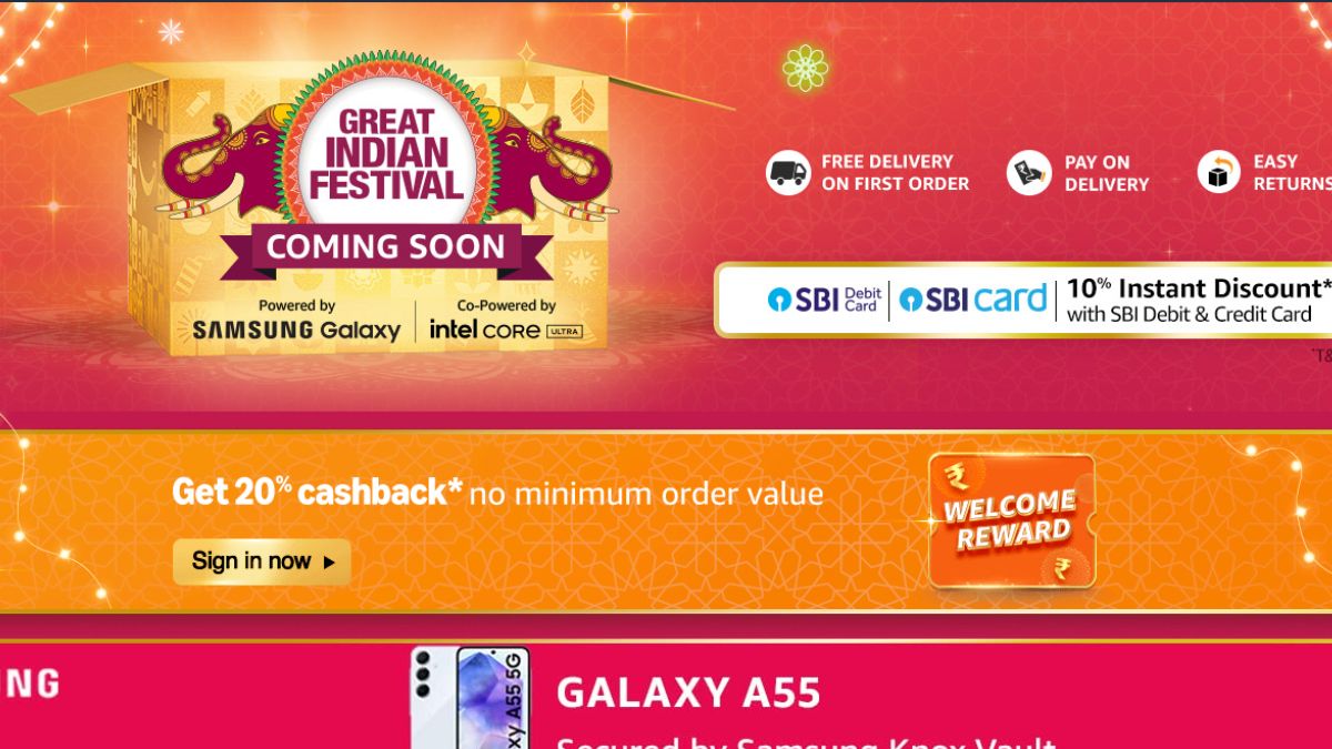 अमेजन ग्रेट इंडियन फेस्टिवल सेल की डेट का एलान हो गया है। अपकमिंग सेल 20 सितंबर से लाइव हो रही है। सेल के बारे में कई तरह की डिटेल अमेजन ने एक हफ्ते पहले ही बता दी है। इसमें लेटेस्ट स्मार्टफोन और उनसे जुड़ी एक्सेसरीज को डिस्काउंट के साथ बिक्री के लिए उपलब्ध करवाया जाएगा। सेल में हजारों रुपये की बचत का मौका मिलेगा।