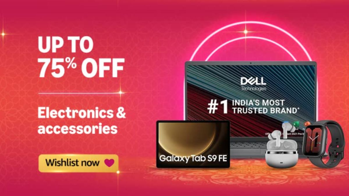 अमेजन सेल में लैपटॉप, टैबलेट, स्मार्टवॉट, ईयरबड्स जैसे इलेक्ट्रॉनिक्स पर 75 प्रतिशत तक की छूट पाई जा सकेगी। सेल में DELL, Noise, Boat और तो और Apple जैसे टॉप ब्रांड के प्रोडक्ट सस्ते में खरीदे जा सकेंगे।