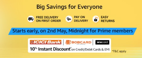 - ये सेल 2 मई को दोपहर से शुरू होगी, जबकि प्राइम मेंबर्स इस सेल का अर्ली एक्सेस 12 धंटे पहले ही पा सकते हैं।