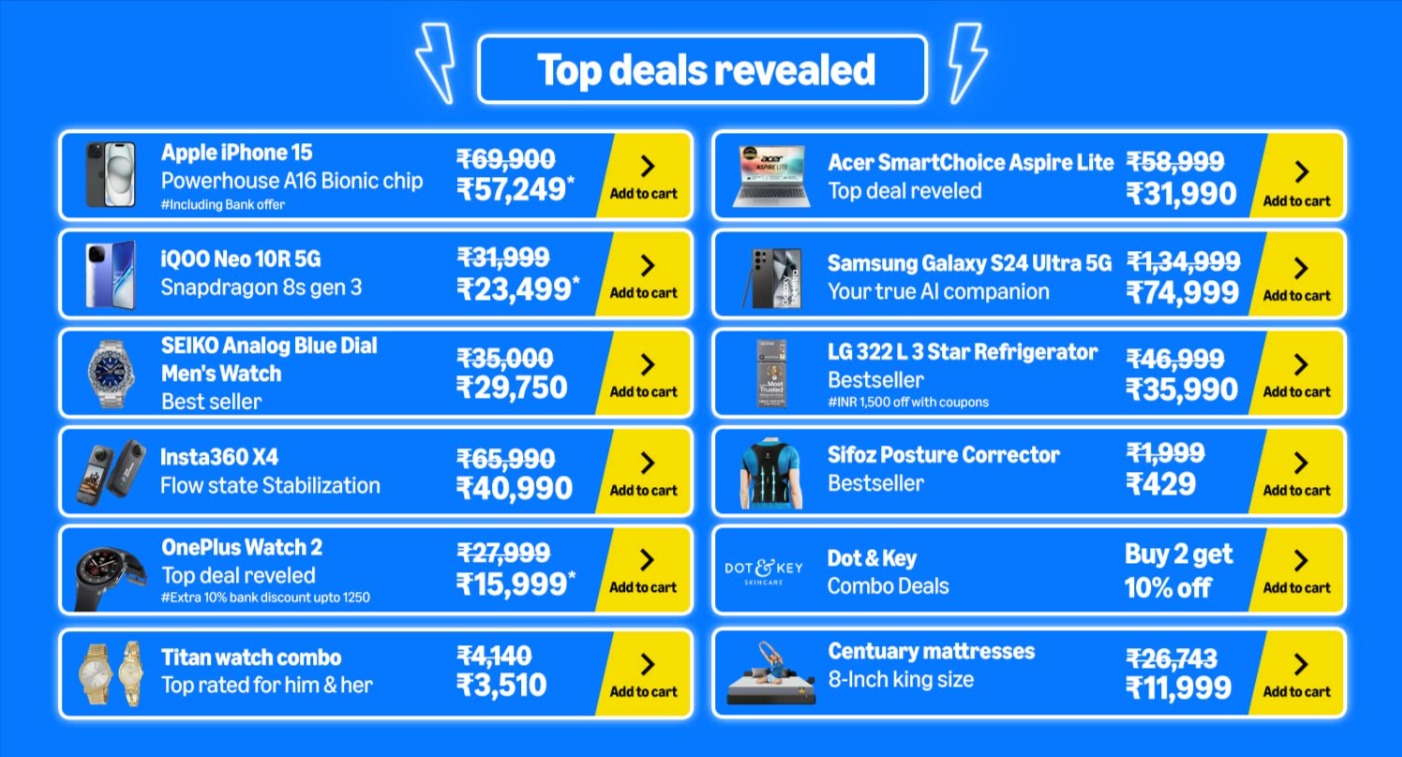 कंपनी ने सेल शुरू होने से पहले कुछ प्रोडक्ट्स पर मिलने वाले डिस्काउंट ऑफर्स का भी खुलासा किया है। सेल पेज के मुताबिक प्राइम डे सेल के दौरान iPhone 15 पर भी बड़ा डिस्काउंट देखने को मिलेगा। सेल के दौरान आप इस आईफोन को काफी कम कीमत पर खरीद पाएंगे। चलिए इस डील के बारे में विस्तार से जानते हैं...