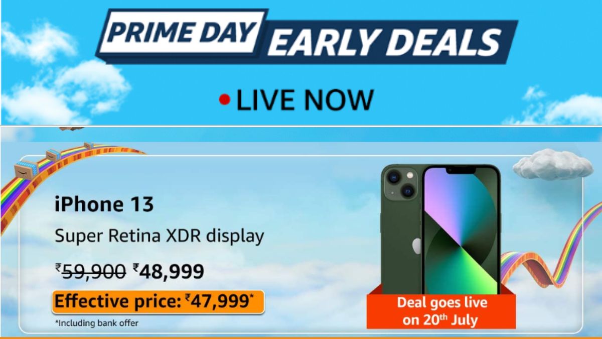 अमेजन प्राइम डे सेल की अर्ली डील में आईफोन 13 को कम दाम पर खरीद सकते हैं। सेल में इस फोन को 47,999 रुपये में खरीदने का मौका मिल रहा है।