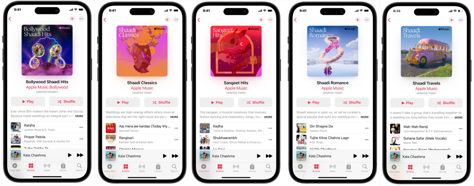 Music भारतीय शादियों का एक महत्वपूर्ण हिस्सा बन गया है। शादी की बंधन में बंधने से पहले कपल अपना म्यूजिक प्लेलिस्ट बना देते है, जिसमें अक्सर दोस्तों और परिवार को शामिल किया जाता है। इस विशेष रूप से क्यूरेट की गई Apple Music प्लेलिस्ट में पसंदीदा सांग्स को एड किया है। आप गाने को सुनकर थिरकने पर मजबूर हो जायेंगे।