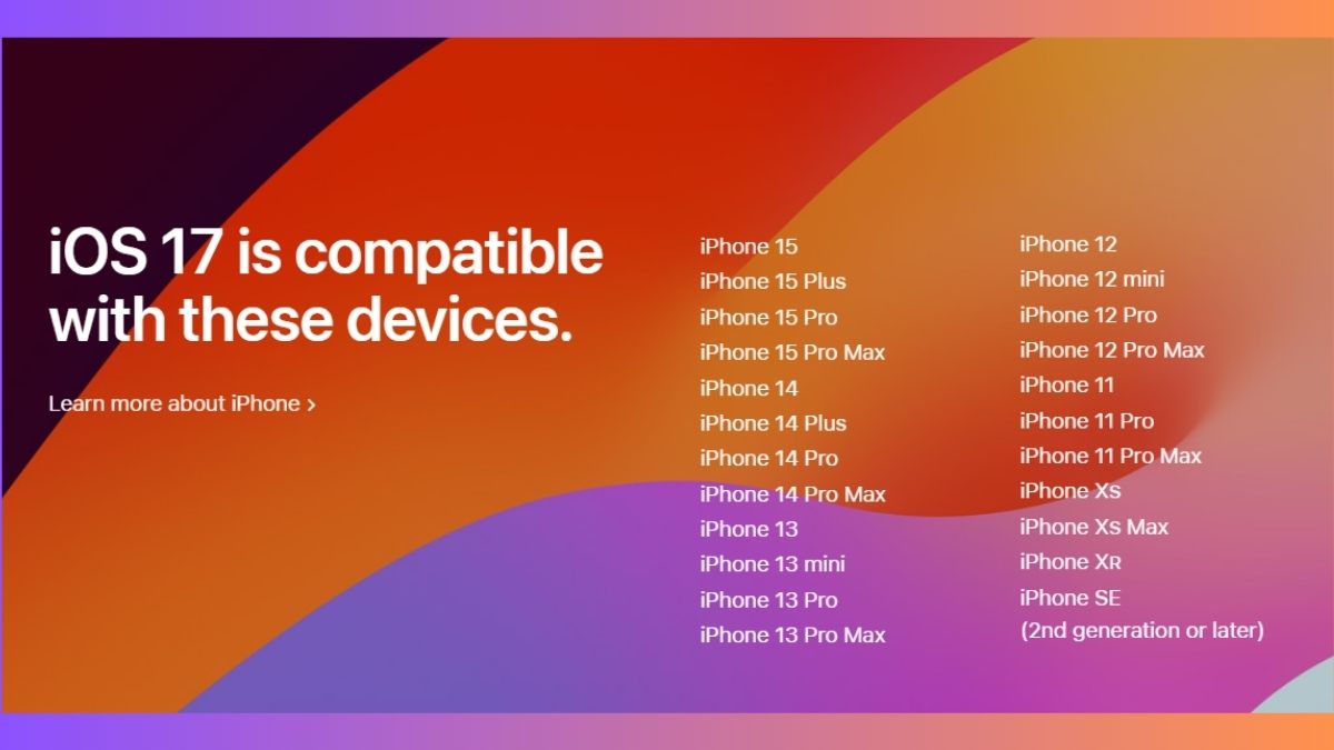 एपल ने अपने यूजर्स की सुविधा के लिए नए सॉफ्टवेयर अपडेट के कम्पैटिबल डिवाइस की लिस्ट भी शेयर की है। इस लिस्ट में एपल ने उन सभी आईफोन मॉडल के नाम का जिक्र किया है, जिसमें नए अपडेट को इस्तेमाल किया जा सकता है।
