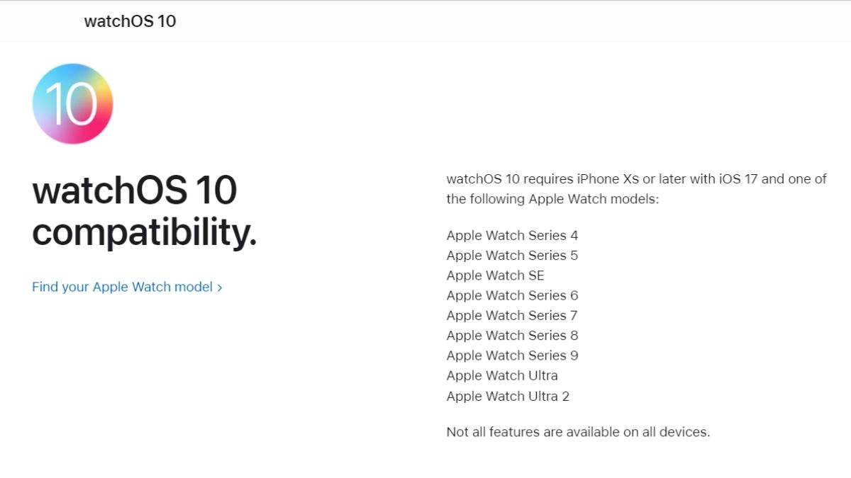 एपल द्वारा दी गई जानकारी के मुताबिक watchOS 10 के लिए iOS 17 के साथ iPhone XS और इसके बाद के मॉडल की जरूरत होगी। इसी तरह कुछ एपल वॉच मॉडल में watchOS10 को इस्तेमाल किया जा सकता है।