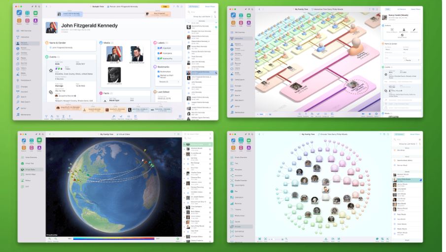 MacFamilyTree 10 एक दिलचस्प ऐप जो यूजर्स को फैमिली ट्री बनाने की अनुमति देता है। यूजर वंशावली रिसर्च (genealogical research ) का डॉक्यूमेंटेशन कर सकते हैं और परिवार के सदस्यों के बारे में डाटा जोड़ सकते हैं।इसमें आपके पास पिक्चर, डॉक्यूमेंट और यहां तक कि साउंड क्लिप जोड़ने का विकल्प होता है। फ़ोटो, डॉक्यूमेंट और अन्य चीज़ों तक आसान एक्सेस के लिए ऐप को iCloud के साथ इंटीग्रेट किया जा सकता है।