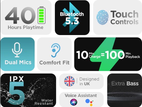 - इस ईयरबड्स में टच कंट्रोल, और वॉयस असिस्टेंट सपोर्ट भी मिलता है।