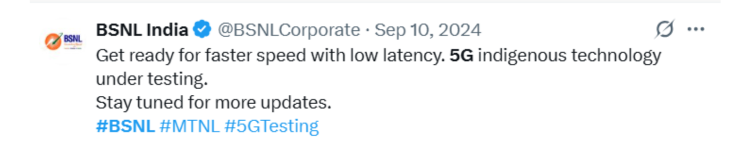 बिजनेस स्टेंडर्ड से बात करते हुए एक अधिकारी ने बताया कि बीएसएनल कानपुर, पुणे, विजयवाड़ा, कोयमबट्टूर और कोलम जैसे शहरों में बेस ट्रांसरिसीवर स्टेशन (BTS) का रोल आउट शुरू किया है। बीएसएनएल ने सितंबर में एक एक्स पोस्ट (पहले ट्विटर) पर देसी 5जी टेक्नोलॉजी की टेस्टिंग के बारे में जानकारी दी थी।