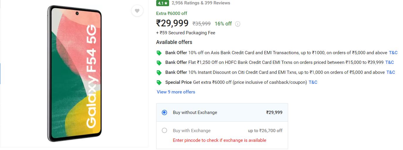 SAMSUNG Galaxy F54 5G की खरीदारी ऑनलाइन करते हैं तो 26 हजार से ज्यादा की बचत भी की जा सकती है। हालांकि, 26 हजार रुपये से ज्यादा की बचत एक्सचेंज ऑफर में ही करने का मौका मिलेगा।