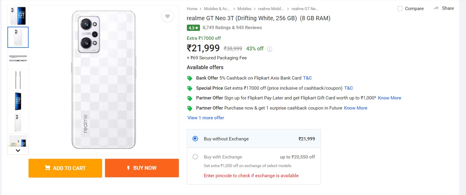 39 हजार वाले Realme GT Neo 3T फोन पर बंपर डिस्काउंट, मात्र 1449 रुपये में खरीदने का मिल रहा मौका