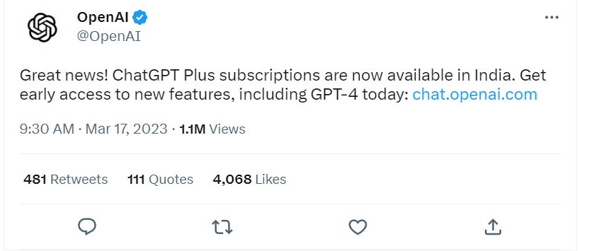 ChatGPT Plus सब्सक्रिप्शन सर्विस भारत में लॉन्च, चुकानी होगी इतनी कीमत