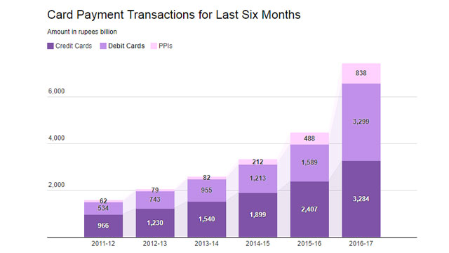 अगर वाल्यूम की बात करें तो इस साल यानी जनवरी 2017 महीने में यह आंकड़ा 328 मिलियन तक पहुंच गया। जो कि बीते साल के जनवरी महीने में 109 मिलियन का रहा था। यह तीन गुना का इजाफा है। खुदरा टर्मिनलों के सबसे बड़े नियोक्ता में से एक पाइन लैब्स के चीफ एग्जीक्यूटिव ऑफिसर लोकवीर कपूर ने बताया, “देश के स्वीकृति बुनियादी ढांचे में काफी वृद्धि हुई है, जो कि कार्ड से लेन-देन की अनुमति देता है और जिसकी वजह से ही नोटबंदी के बाद इसमें अच्छा खासा इजाफा देखने को मिला है।”