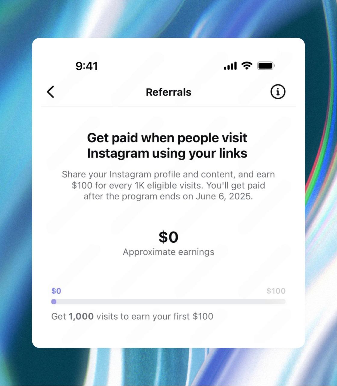 इंस्टाग्राम का रेफरल प्रोग्राम ऐप पर ट्रैफिक और नए साइन-अप बढ़ाने के लिए क्रिएटर को अवार्ड देने के लिए डिजाइन किया गया है। इसमें दो पेमेंट मॉडल हैं, कुछ क्रिएटर अपने रेफरल लिंक के जरिए रजिस्टर करने वाले हर नए एलिजिबल यूजर के लिए 100 डॉलर ले सकते हैं। जबकि अन्य अपने शेयर लिंक द्वारा ऐप पर हर 1,000 एलिजिबल विजिट के लिए 100 डॉलर कमाते हैं। हालांकि, टेस्टिंग फेज के दौरान कुल पेमेंट पर क्रिएटर 20,000 डॉलर तक है।