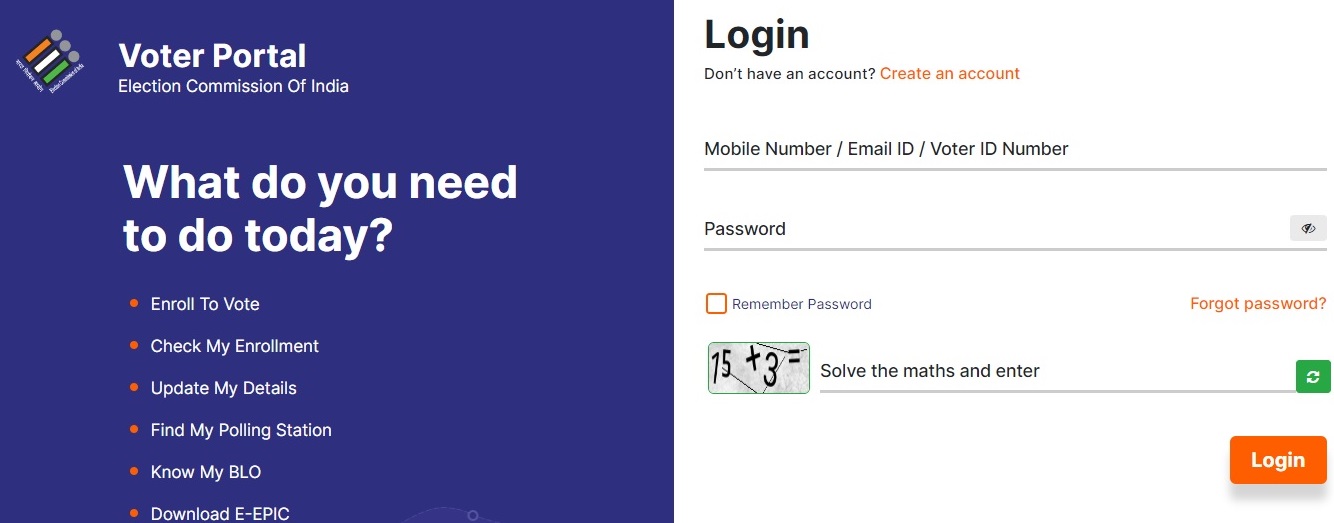 - अब यहाँ आपको अपने वोटर आईडी कार्ड या फिर ई-मेल/मोबाइल के जरिए लॉग इन करना है।