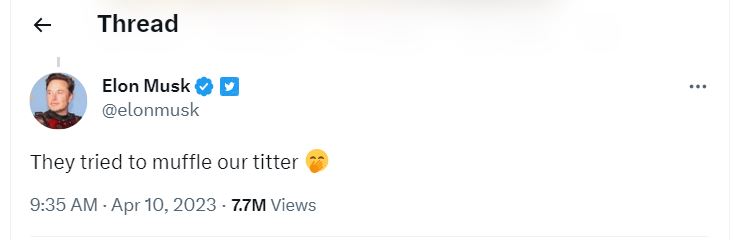 इसी के साथ ट्विटर सीईओ ने एक दूसरा पोस्ट शेयर करते हुए आगे लिखा है, "They tried to muffle our titter" यानी वे हमारी हंसी को दबाने की कोशिश कर रहे थे।