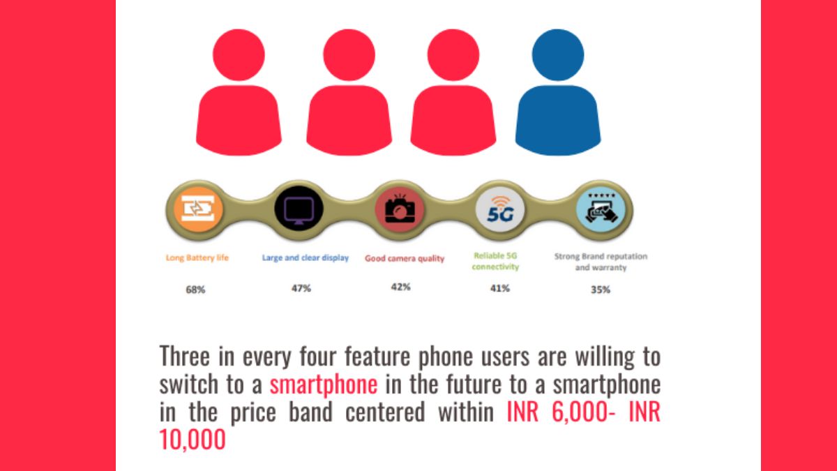 - 41 प्रतिशत फीचर फोन यूजर स्मार्टफोन के लिए 5G कनेक्टिविटी को प्राथमिकता देंगे।