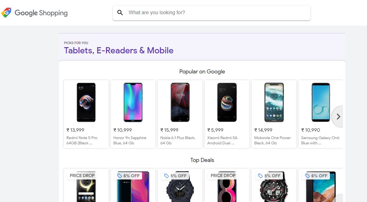 Google Shopping की मदद से ग्राहक मल्टीपल ई-कॉमर्स साइट्स पर मिल रहे बेस्ट ऑफर्स को एक साथ देख सकेंगे, जिसमें रिटेलर्स भी शामिल हैं। Google Shopping यूजर्स को सरल और यूजर-फ्रेंडली शॉपिंग एक्सपीरियंस प्रदान करता है। Google ने इस प्लेटफार्म पर डेडिकेटेड सेक्शन्स जोड़ें हैं जिसमें प्राइस ड्रॉप्स, टॉप डील्स और Google पर मौजूट टॉप डील्स को एक साथ देखा जा सकता है। इसके अलावा मोबाइल फोन, स्पीकर्स, वुमन क्लादिंग, बुक्स, वॉचेज, होम डेकॉर, पर्सनल केयर, अप्लांयसेज आदि के लिए कैटेगरी शामिल हैं।