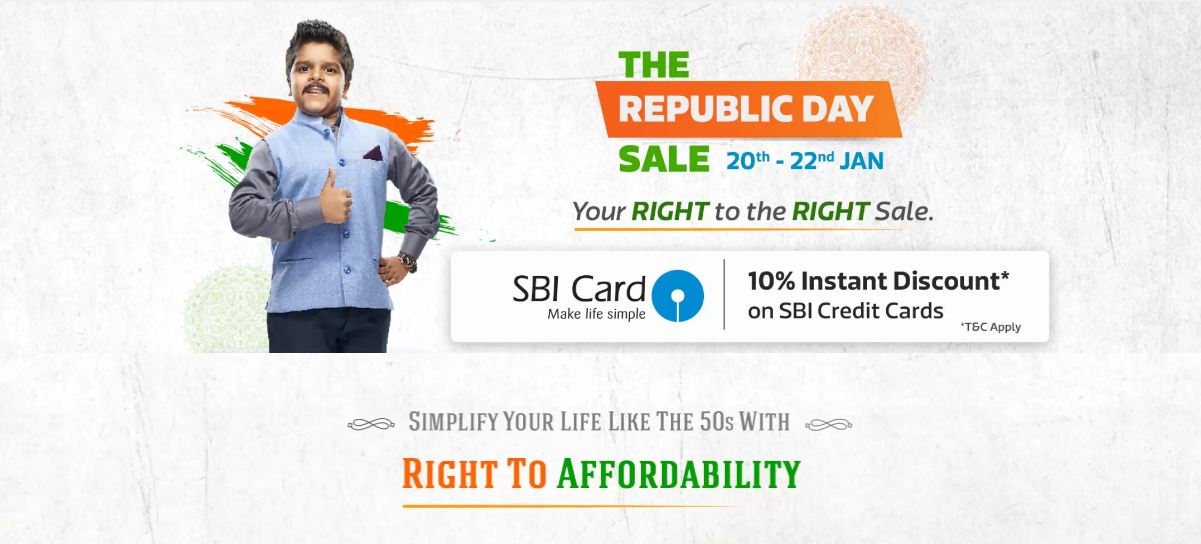 नई दिल्ली (टेक डेस्क)। Flipkart ने Amazon के Great Indian Sale को चुनौती देने के लिए Flipkart Republic Day Sale 20 जनवरी से शुरू होकर 22 जनवरी तक चलेगी। तीन दिन तक चलने वाले इस सेल में ग्राहकों को स्मार्टफोन्स से लेकर अन्य इलेक्ट्रॉनिक डिवाइस पर बंपर डिस्काउंट ऑफर किया जाएगा। Flipkart Republic Day Sale में इस बार स्मार्टफोन्स, लैपटॉप, स्मार्ट टीवी और टीवी पर "blockbuster deals" दी जा रही है। इसके अलावा भारतीय स्टेट बैंक क्रेडिट कार्ड यूजर्स को 10 फीसद का इंस्टेंट डिस्काउंट भी ऑफर किया जाएगा। सेल में आपको नो-कॉस्ट ईएमआई और एक्सचेंज ऑफर्स भी दिया जा रहा है।