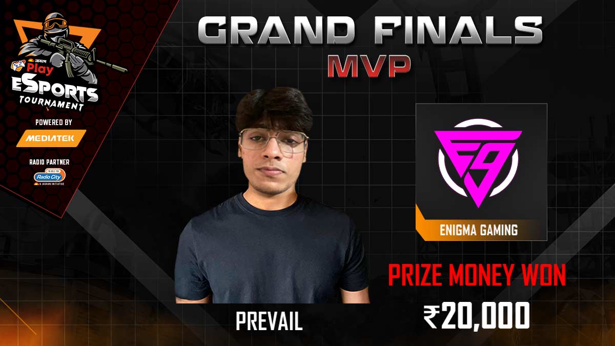 Esports Tournament का फाइनल मैच रोमांच से भरा रहा। NS Official ने 1 लाख रुपए जीतकर चौथा स्थान प्राप्त किया। वहीं टीम Tryhards पांचवें और छठे स्थान पर रही और 50 रुपए हजार रुपए जीती। T2P Infective की टीम भी पांचवें और छठे स्थान पर रही और 50 रुपए हजार रुपए जीती। इसके अलावा, 30-30 हजार रुपए जीतकर Team Vitality और Memoria सातवें व आठवें स्थान पर रही। बात करें MVP की तो 20 हजार रुपए के प्राइज के साथ Enigma के प्लेयर Prevail ने MVP का खिताब जीता। वहीं, 20 हजार रुपए की प्राइज के साथ GodLike Esports के प्लेयर Trunks को FFP और 1 लाख रुपए के साथ GodLike Esports टीम को FFT का खिताब मिला।