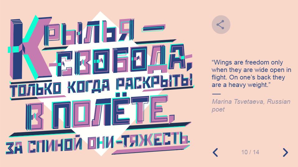 दसवीं स्लाइड में रूसी कवयित्री मरिना स्वेसेवा का कोट है। इसमें लिखा है, 'पंख तभी आजाद है जब वो उड़ान भरने के काम आए, वरना पीठ पर वह एक बोझ के समान है।'