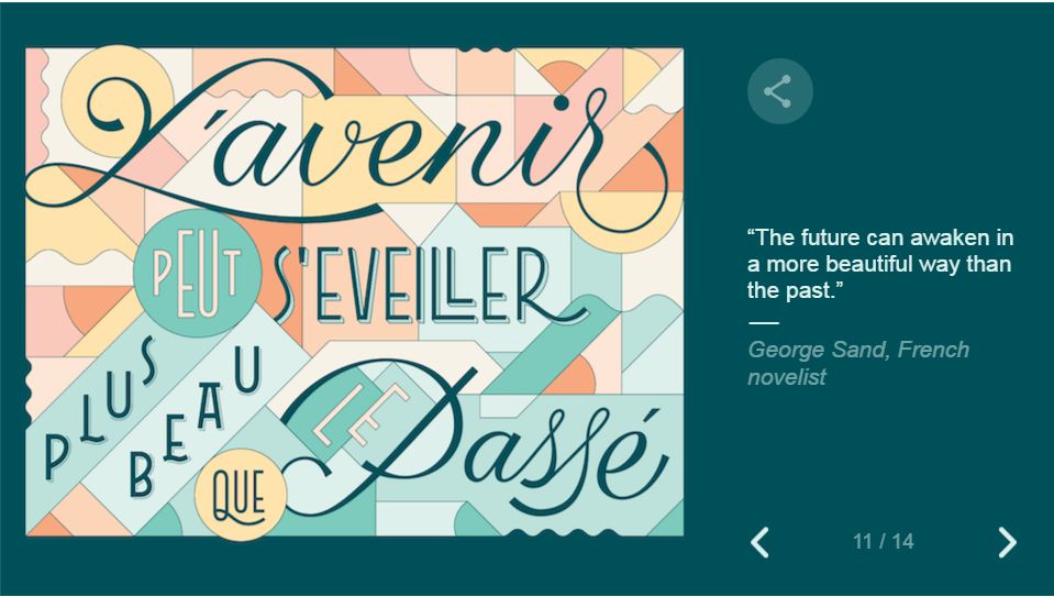 ग्यारहवीं स्लाइड में फ्रांसिसी उपन्यासकार जॉर्ज सैंड ने लिखा है, 'भविष्य को अतीत की तुलना में अधिक सुंदर जाग्रत किया जा सकता है।'