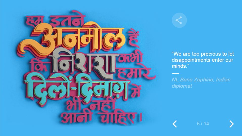पांचवीं स्लाइड में आपको भारतीय डिप्लोमेट एनएल बेनो जेपिन का कोट मिलेगा। इसमें लिखा है, 'हम इतने अमूल्य हैं कि निराशा कभी हमारे दिलों-दिमाग में भी नहीं आनी चाहिए।'