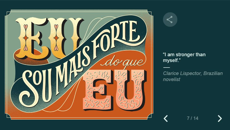सातवीं स्लाइड में ब्राजीक की उपन्यासकार क्लार्सी लिपेक्टर का कोट मिलेगा। इसमें लिखा है, 'मैं अपने आप से ज्यादा मजबूत हूं।'